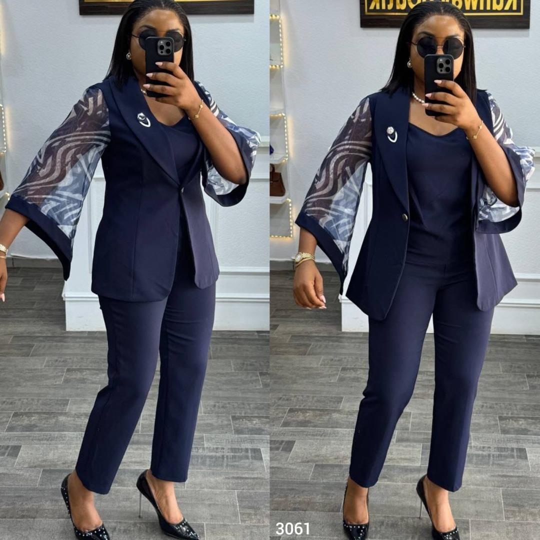 Découvrez le Tailleur Navy Prestige, un ensemble raffiné pour femmes d’influence.